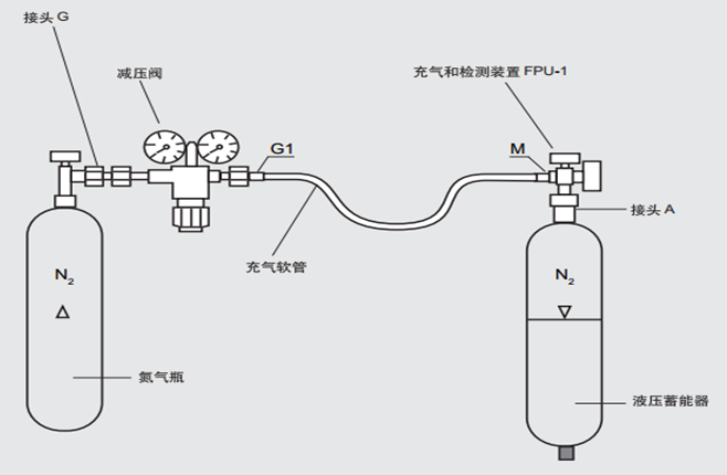 僅限用氮?dú)饨o蓄能器充氣。 切勿使用氧氣!爆炸危險!如...